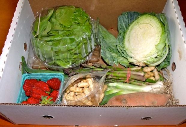 They deliver N.C.-grown produce (and sometimes other products, such as bread) right to my workplace. I split the box with a couple at work, and it costs me $11 per week. That’s $11 well spent, as I will prove in the coming posts …
