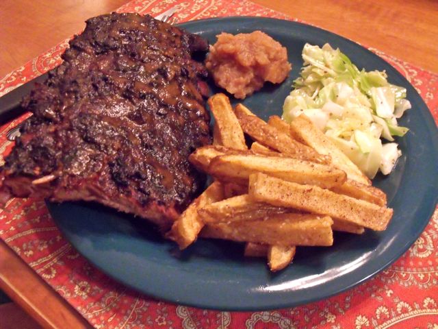 I highly recommend serving the ribs with applesauce (if you read my last entry, you know where that came from). It may not be island authentic, but the applesauce really cools down the heat from the jerk. And the combination of pork + apples never gets old.