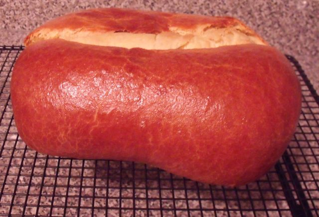 5. Butter an 8 1/2-by-4 1/2-inch loaf pan. Turn the dough out onto a lightly floured work surface and let it soften for a few minutes. Pat or roll the dough to a rectangle (or oval) about 12 inches by 8 inches, with one of the long sides facing you. Fold in the sides so that they meet in the center and the dough is about 6 inches wide. Starting from the top, roll tightly into a log. Place the loaf seam side down in the prepared pan. Cover with oiled plastic wrap or enclose in an oiled plastic bag, and let rise until increased in bulk by about 1 1/2 times and very soft, 2 1/2 to 3 hours.