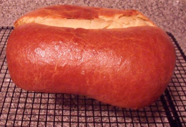 7. Brush the top of the loaf with the egg wash. Place the loaf pan on a baking sheet and put it into the oven. Immediately reduce the oven temperature to 375 and bake, rotating the sheet about two-thirds of the way through the baking time, until the brioche is golden brown and the loaf sounds hollow when tapped on the bottom (use an oven mitt to carefully lift it up, and gently tap on the bottom with your knuckles), 30 to 35 minutes. Turn the loaf out immediately on its side onto a wire rack to cool completely.