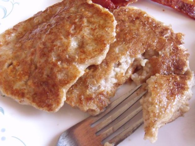 Anyway, this was his last ‘real’ column, and I had to try one of the recipes. Not as a tribute, really, but because it’s a way to make pancakes more healthful and interesting. So I spiced up a weekend breakfast with these oatmeal pancakes.