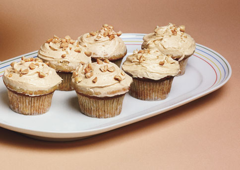 Last night, with a near-rotten banana on hand, I had to make the Banana Cupcakes. I don’t usually deviate when baking, but since it was a spur-of the moment thing, I made a few adaptations: Cutting the recipe in half; using 1 egg instead of 1 egg and 1 egg yolk; using plain yogurt in place of sour cream; instead of peanut butter frosting, topping them with peanut butter chips.